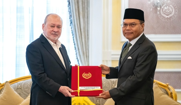 Tan Sri Muhammad Shahrul Ikram Yaakob menerima watikah pelantikan daripada Yang di-Pertuan Agong Sultan Ibrahim di Istana Negara hari ini/Foto Facebook Sultan Ibrahim