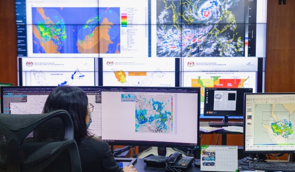 Kakitangan Jabatan Meteorologi Malaysia (MET Malaysia) melihat keadaan satelit di Jabatan Meteorologi /Foto BERMAMA